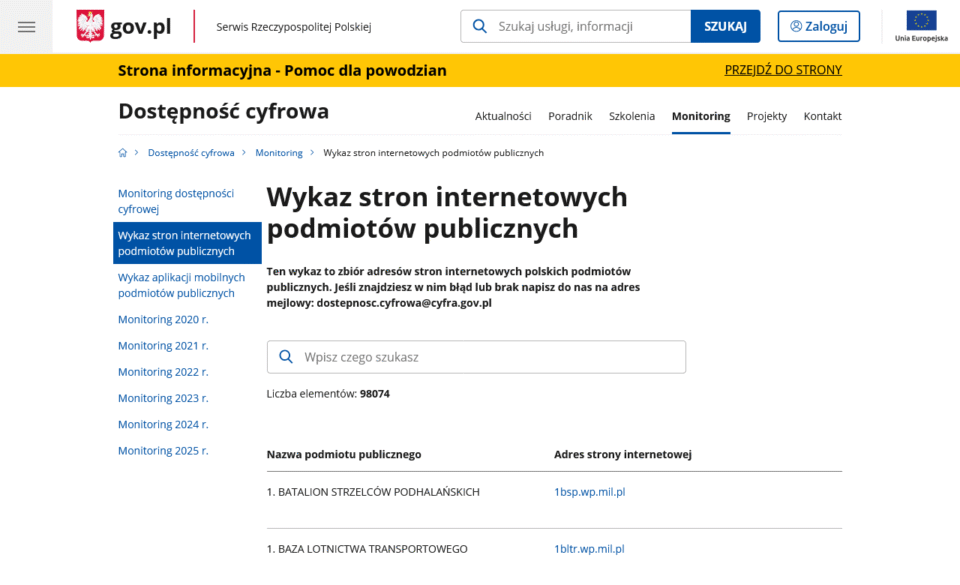 Ministerstwo Cyfryzacji regularnie publikuje wykaz stron internetowych, które zostały wytypowane do badania pod kątem dostępności cyfrowej. Informacja o tym wykazie znajduje się w Art. 14 ustawy, który precyzuje zasady jego tworzenia oraz kryteria wyboru stron do kontroli. Lista ta pozwala instytucjom zorientować się, czy ich serwisy zostały objęte kontrolą.